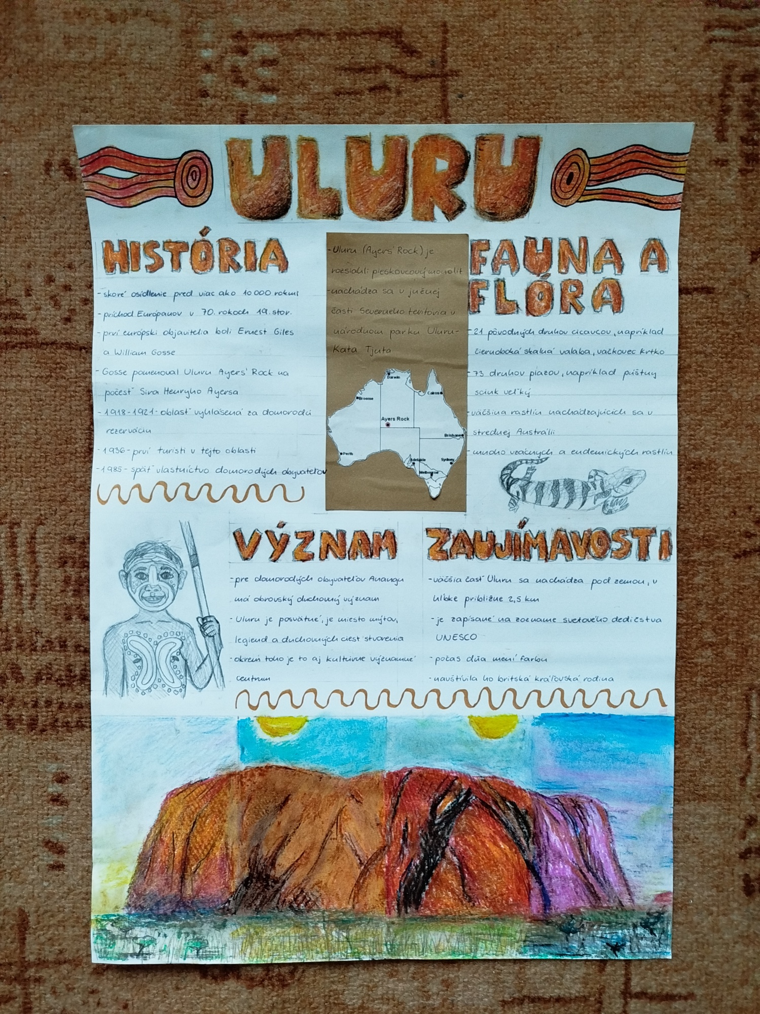 Vo svojej veľmi peknej prezentácii zdôraznili posvätnosť miesta, odkazujúce na príbehy predkov, ich duchov, kde každá jaskyňa a každý skalný obraz nesie hlboký duchovný význam.